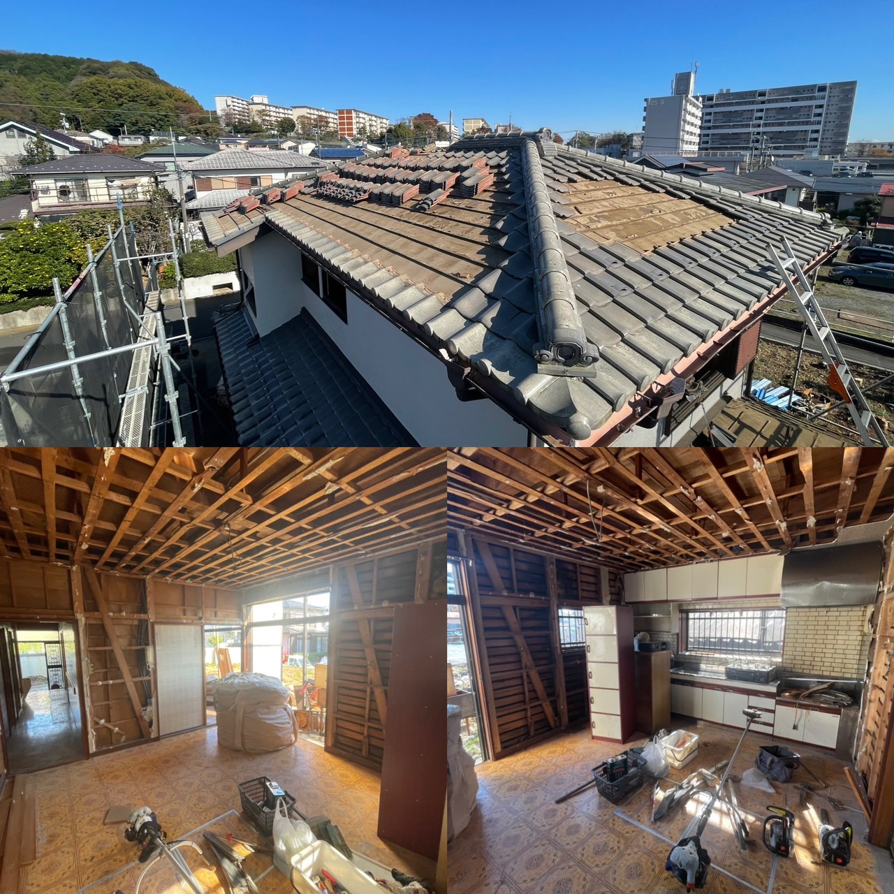 今は瓦を剥がし一回の内装を解体しております。